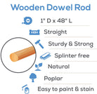 1" x 48" Wooden Dowel