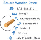 5/16" x 12" Square Wooden Dowel Rods