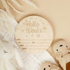 Round “Hello World” Birth Announcement Sign, 5.5”